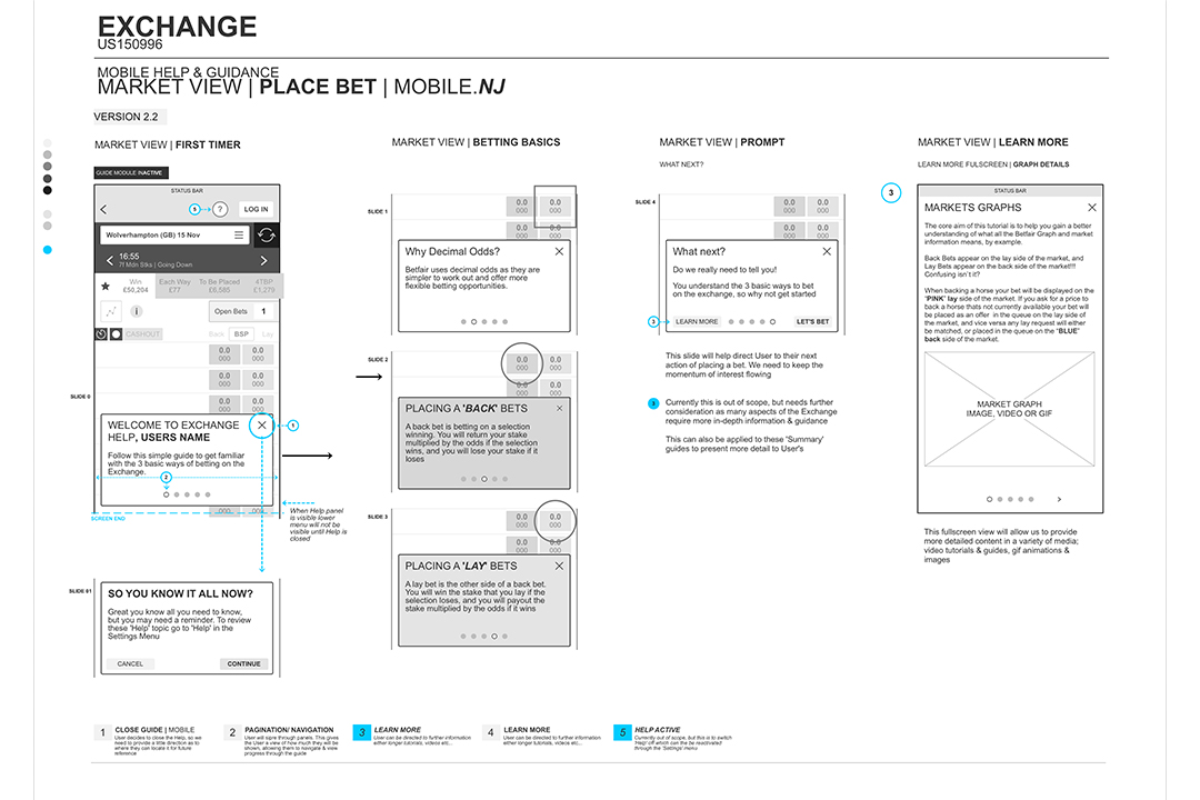 Understanding the domain and users was key. I invested time learning the Exchange betting concepts & reviewing the Exchange UX Customer documentation.