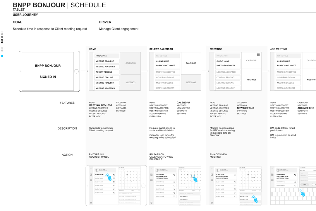 To ease delivery of managers services to their high net worth clients by challenging the current ‘face-to-face’ , location restrictive, flight dependant personal service model, through a video conference app. Helping to engage & evolve with their lifestyle & continue to support their future wealth needs.