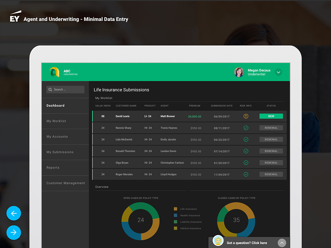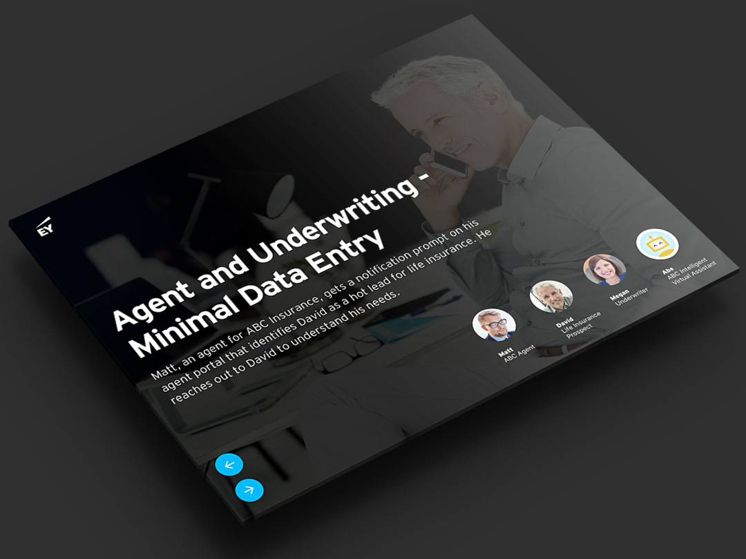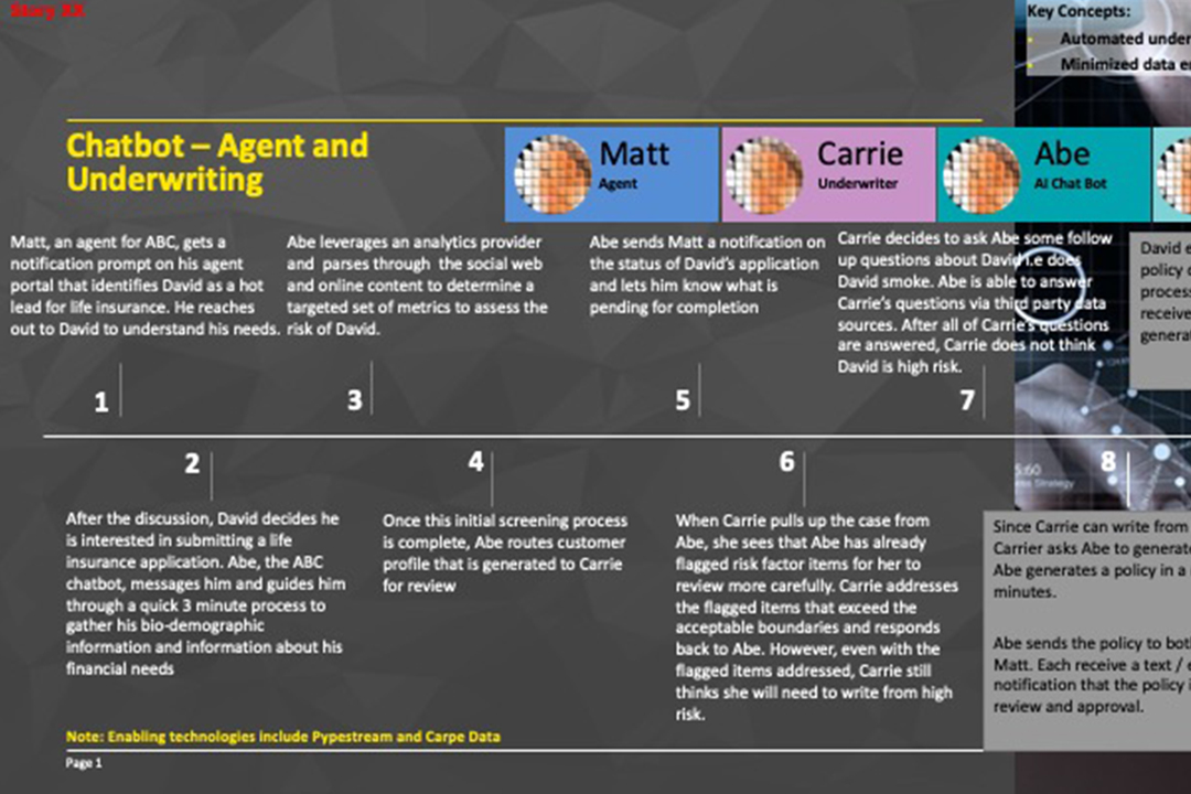 In the Agent & Underwriter - Minimal Input story, we focused on using AI, Chatbots & Facial recognition to reduce some of the input load for all personas & streamline application processes.